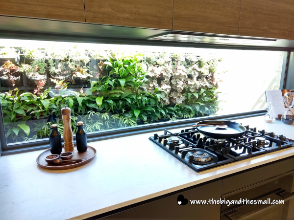 Every home we've stayed in and looked at has really emphasized windows and natural light. Elaine's home has no upper cabinets in the kitchen so that there could be a wall of windows instead. In this show home, they chose to use windows as the backsplash so there could be both upper cabinets and natural light.
