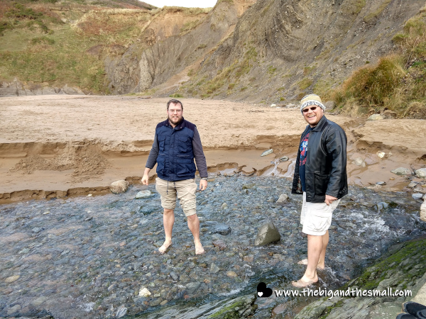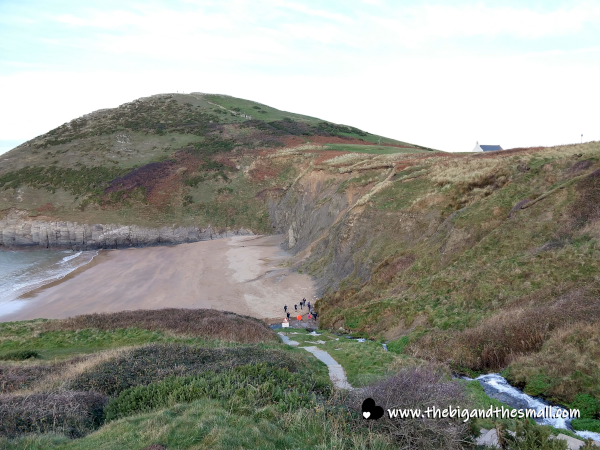 From this vantage point, we could see the stairs that would take us down to the beach, and more of the waterfall that ran alongside. I was excited to get close to both of those things! (Yes, I know I said I hate the beach, but they are different in the UK!)