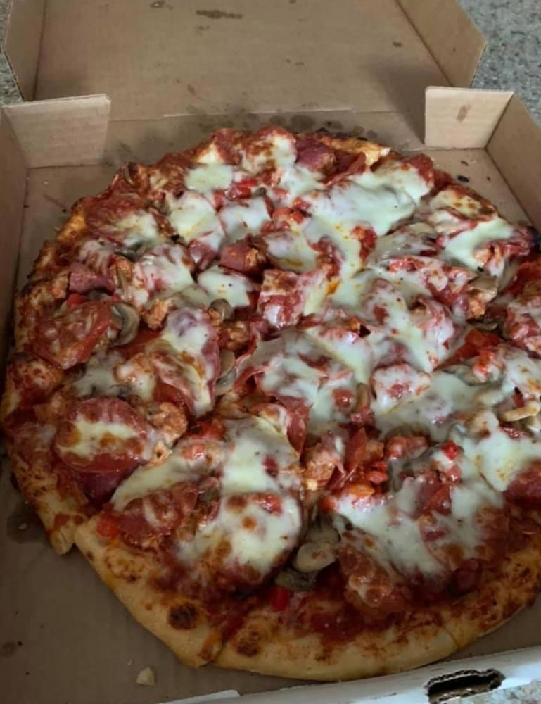 On Thursday morning I scheduled a service call in case it could be repaired. The earliest appointment was Saturday and the verdict was the baking element blew. The repair cost estimate was almost half what we are paying for a new range. So, we will have a new range on Saturday. For Sunday’s creation, I made the pizza & sent it to Matthew’s to bake.