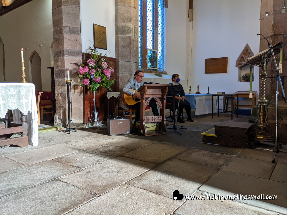 The last Sunday in August was a “Fifth Sunday” (when there are 5 Sundays in a month instead of 4.) In one of the villages I serve, Trellech, they have a longstanding tradition of combining worship between the Methodists and the Anglicans on a Fifth Sunday. This was the first Fifth Sunday that we were back to holding in-person worship, so we combined for worship at St. Nicholas Church. The church building is absolutely gorgeous and dates back to around 1300. I felt so honoured to get to preach in a space with so many centuries of history! Rev. Tim played his guitar and Rev. Karen is modeling that we were definitely still in 2021 with her mask.
