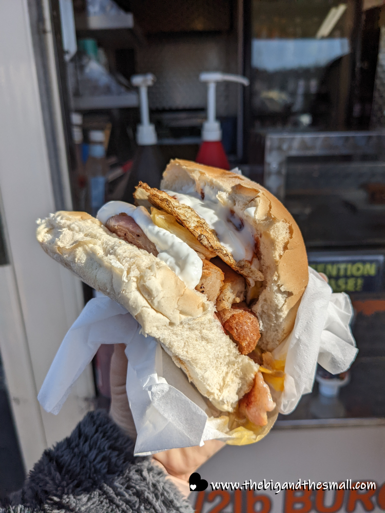 Friday the 18th dawned gorgeous and sunny so we went into town to shop at the outdoor market. We ended up getting this absolutely delicious breakfast sandwich - it was basically a Full English (minus the beans) on a bun. Then we went back home and worked on cleaning out the garage, fun stuff.