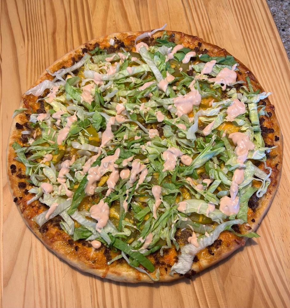 Sunday’s Creation: Who remembers the McDonald’s jingle from 1974…Two all beef patties, special sauce, lettuce, cheese, pickles, onions on a sesame seed bun? How ‘bout those classic flavors on a crust?…A Big Mac Pizza!