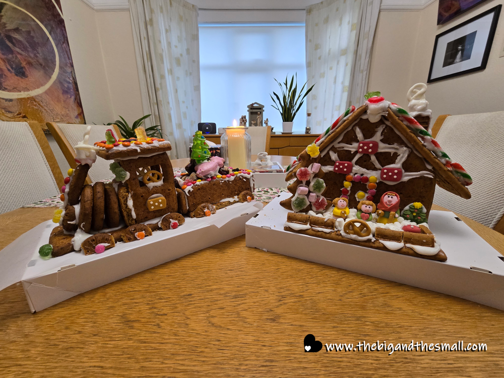On that Saturday we decided to revive a Christmas tradition from my childhood - making gingerbread houses! We used a kit and Joel made a train, not a house, but it was so much fun. We used all the candy that came with and some we have had lying around the house for far too long (we don’t really eat candy but it comes in my book boxes often!) Look how cute they turned out!