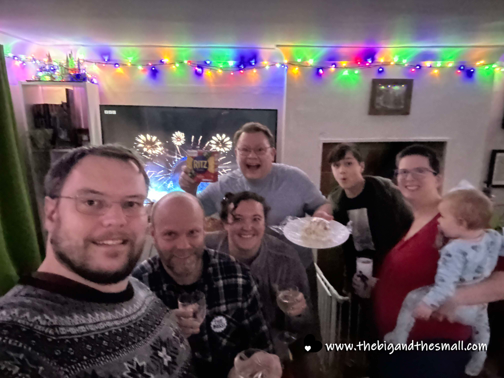 For NYE, we gathered Steve and Jacob and headed up to Amy and Ben’s to spend the day playing games and the evening ringing in the new year. I wore a new fabulous sparkly dress, and the best photo I have of it is a selfie I took with the dog, so here’s a photo of Merlin and me.