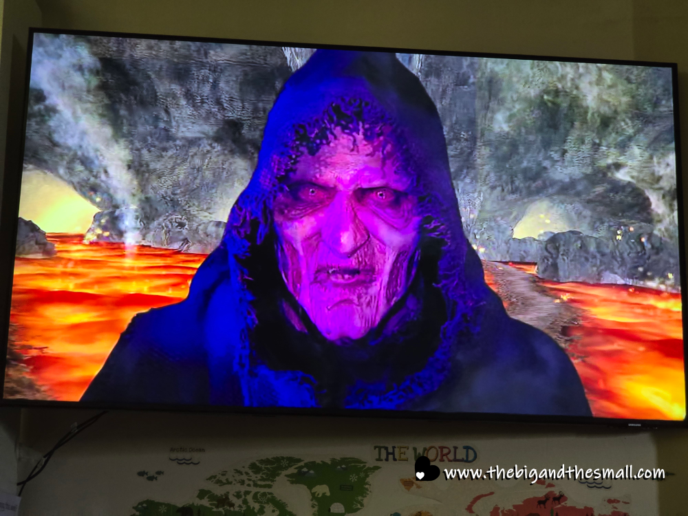 It’s a very odd game to be aimed at kids, because it features this creepy dude! There’s a DVD playing throughout the game and you have to keep pausing and doing what he tells you to do. It was fun but stressful, and while I’m glad I played it once, I don’t need to play it again, so we left the game with Amy and Ben to traumatize their kids with later.