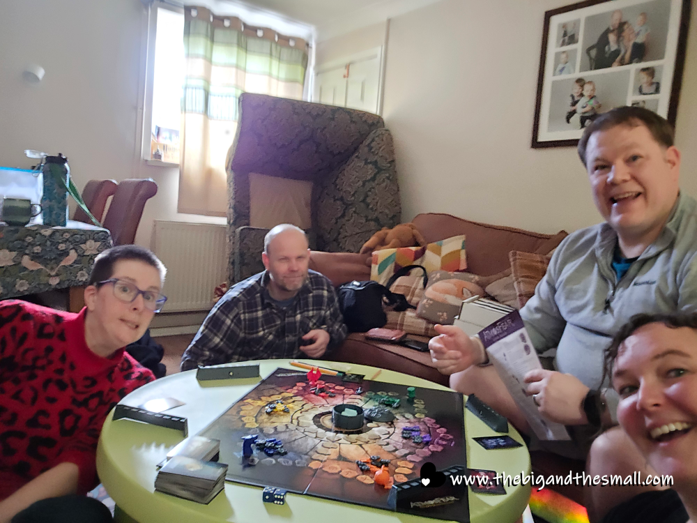 On Thursday the 27th, we had a game day with Amy & Ben! Ben’s school was on half-term but their girls were still in school, so we could have a rare kid-free gaming session. We played an epic game of Dominion using the Divine Wind prophecy from Rising Sun (so fun!) We also played an old kid’s game I picked up at a charity shop last year, called AtmosFear. Amy had fun childhood memories of playing it, while Ben had always wanted it as a kid but never got it. It’s not one that made it to the States so Joel and I had no idea what we were getting into.