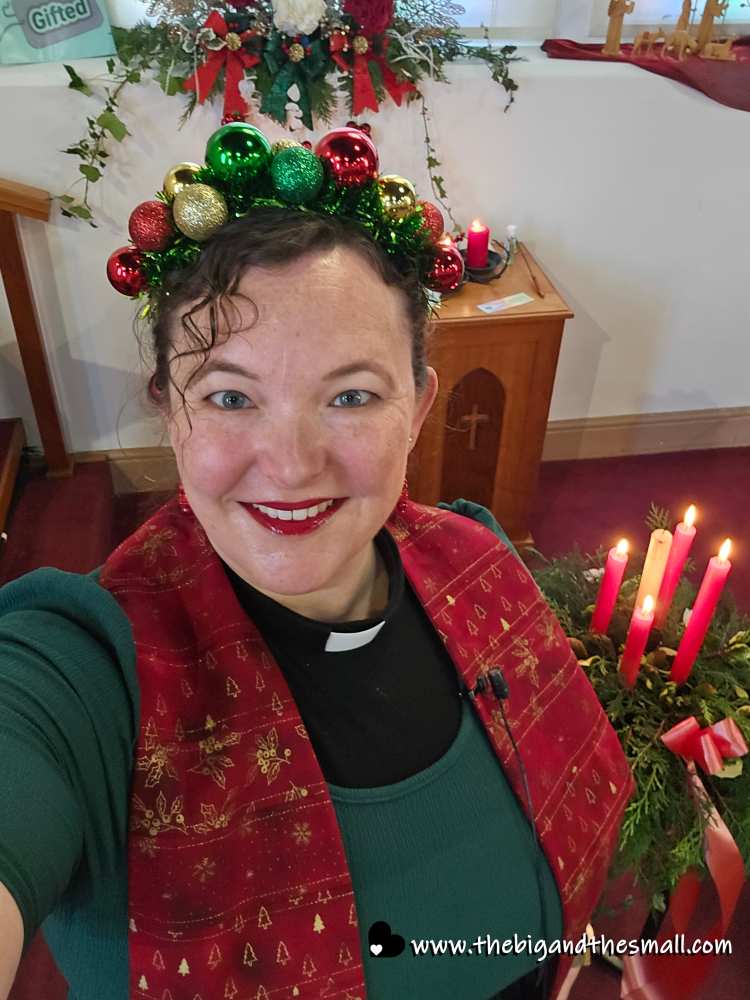 On Christmas Day I led the 10:00 service at Caldicot, complete with my special homemade Christmas stole and an ornament headband.