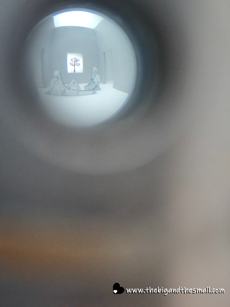 The coolest part of the whole thing was learning about these posts in the middle of the city that have art inside them. We have passed them many times before and never would have noticed they were anything other than normal posts until they contained a clue we had to search for! You have to kneel down on the ground and close one eye to peer in, like looking through a microscope. This is why I love the Mystery Guides, you learn and notice things you never would otherwise.