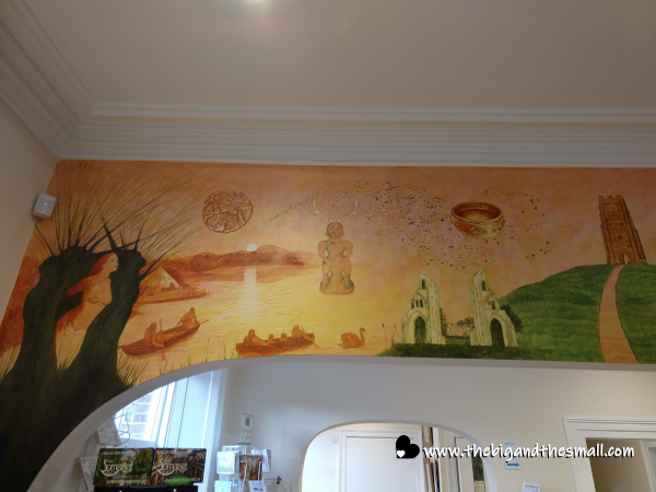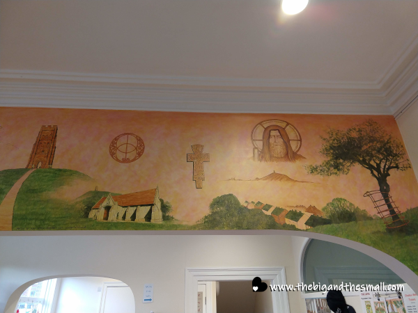 She also spent time showing and explaining the mural that is in the visitor center. It was completed in 2017 and shows the highlights of history in Glastonbury. The far left of the mural depicts the time when most of the surrounding area was underwater; because of this, there were seven sacred islands rather than one big piece of land. The building in the middle of this section is the Glastonbury Abbey, of which the ruins are still here today. So much legend surrounds this place. It is believed that Joseph of Arimathea (from the Bible!) came here after the death of Jesus and began the first Christian church in Britain. Later on, the same site is where the Abbey was built. Then, it is believed that King Arthur and Guinevere were buried here! At the far left of this section is the Glastonbury Tor - the remains of an old tower that sit on the top of the highest land in the area.