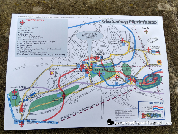 The first place we found parking in town happened to be across from the visitor's center so we decided to check it out - and I am so glad we did! The lovely staff person inside gave us tons of fascinating information about the town - I had no idea how much spiritual and religious history was here. It turns out people actually come to Glastonbury to complete a pilgrimage - both Christian and Pagan. We were given this map that shows all the places you can visit.
