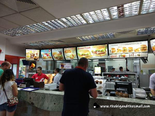 When we arrived I was surprised to discover that there were no order kiosks at this McDonald's! This is the first one we have been to outside of the United States where we actually had to talk to a person to place our order. Thankfully at least two of the workers spoke English, so it was a fairly straightforward process. We did take quite a while to decide what to get though, as the menu was a bit harder to decipher in Bulgarian.