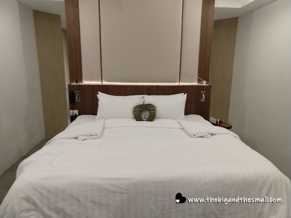 Our room was on the ground floor so we had a terrace instead of a balcony. Upon walking in there was a small sitting area and then the big, beautiful king-sized bed took center stage. We both decided that this was by far the most comfortable bed we have slept in since leaving our own over a year ago. The headboard was also amazing with built in lighting, a switch that could turn off all the lights in the room (no having to get back out of bed at night!) and plugs that had universal adaptors built in so it was easy to charge our phones! Behind the bed wall was the bathroom which was up to a high standard.