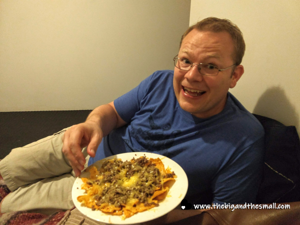 For dinner, I decided on one of my favorite foods to make at home - nachos! We can get good chips, cheese and sour cream around here, but like everywhere else we've been so far, salsa is expensive. Thankfully, when I was home this summer my mom gave me a spice mixture that, when added to canned tomatoes, makes for a pretty good salsa! I had whipped up some of that a few days ahead of time so the flavors could really meld and it made for the perfect accompaniment to nachos.