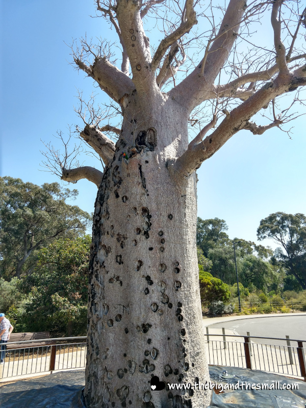 We came across a huge tree that was protected and encircled by a fence. My attention was first drawn to it as someone pointed out the most colorful bird I've ever seen hanging out in the branches! If you look verrrry closely at this picture you will see it. I then found a sign which told the history of this Boab tree - which did not originate in this area! The tree is an estimated 750 years old and used to live 3200km north of here in Telegraph Creek. When the construction of a new bridge on the Great Northern Highway meant the tree needed to be moved, it traveled to its new home here in the park in 2008.