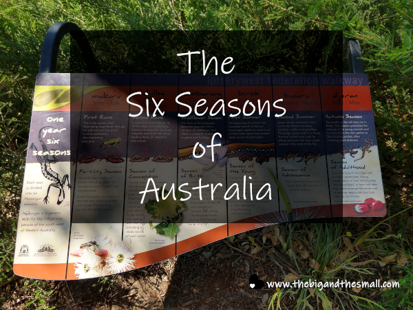 When we went to King's Park last week, I was fascinated to learn that the original inhabitants of Western Australia divided the year into six seasons. I thought it would be fun to explore with you the six seasons of Australia! (All of this information is from a helpful sign in King's Park.)