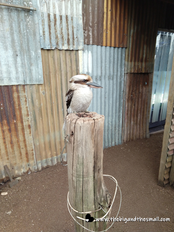We also go to get up close and personal with a Kookaburra! (Anyone else remember that song from when we were kids? Kookaburra sits in the old gum tree, merry merry king of the bush is he....) (Have fun having that stuck in your head now.) He was so close I could have reached out and touched him but I didn't because take a look at that beak!