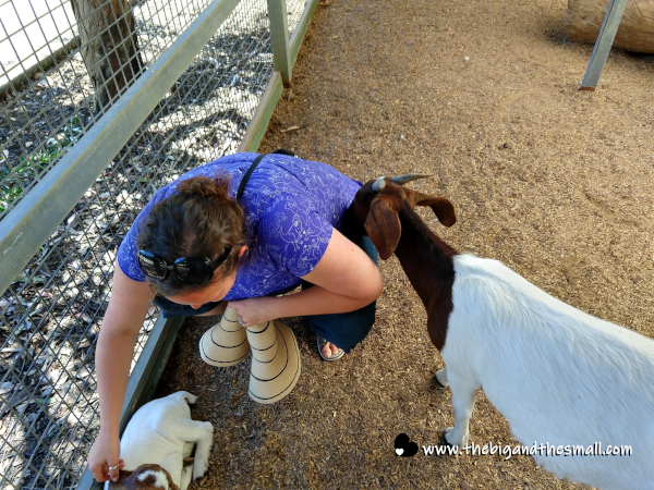 While I was petting the baby goat a big boy goat tried to start eating my shirt. That was a real danger in this place! They also tried to get my hat several times.