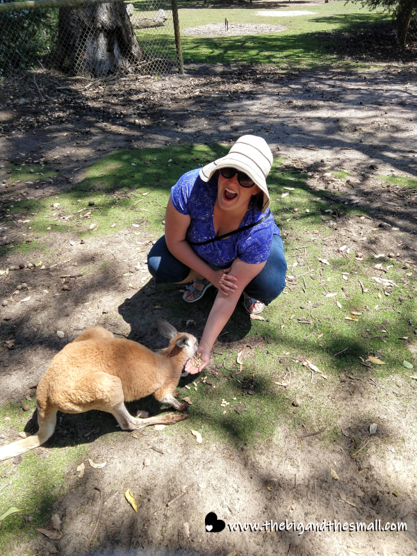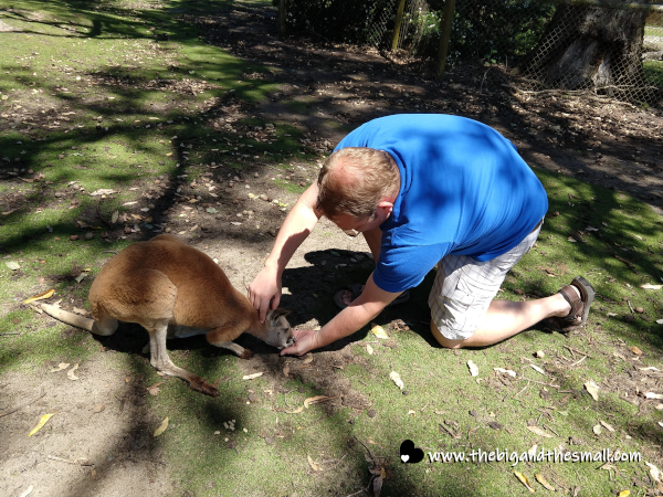 The park provided kangaroo food free of charge so all we had to do was take a handful and find one who was still hungry. This little guy came right up to us and started eating out of our hands. He was very gentle and even let us pet him while he ate. He was soft and fuzzy, not unlike the possum earlier. I still can't believe I got to feed and pet a kangaroo! It was definitely a once in a lifetime experience!