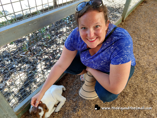 The first animals we got to take our picture with was Neil the Wombat. We were allowed to pet him at this time, too, as long as we used the back of our hand and only touched his bottom legs. There was a display sign that shared the stories of all the Wombats at Caversham, all of them were orphaned in the wild so coming here was the only way they would have survived. Neil was born in 2007 and orphaned when his mum was hit by a car while he was still living in her pouch! He was rescued by a passer-by, taken care of by a wildlife expert, then sent to Caversham in 2009 to live out his days in contentment.