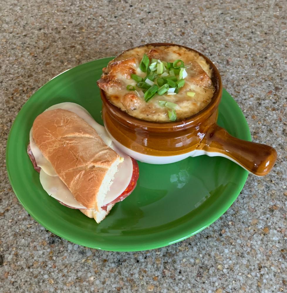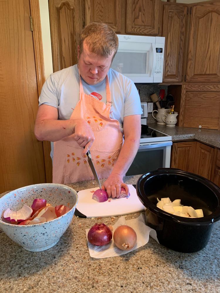 We also made French Onion Soup in the crockpot. We cooked the onions in the crockpot for 12 hours (in the garage). We then finished off the soup and cooked for another 8 hours.