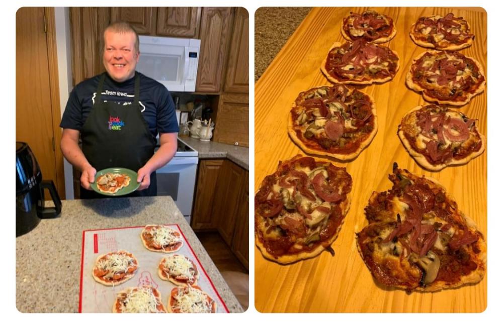 On Friday we tried a new pizza method…Air Fryer Pizza. It was very time consuming, as you pre-fry the crust before putting on the toppings. The directions said after the pre-fry to put on the toppings and then you could freeze them.