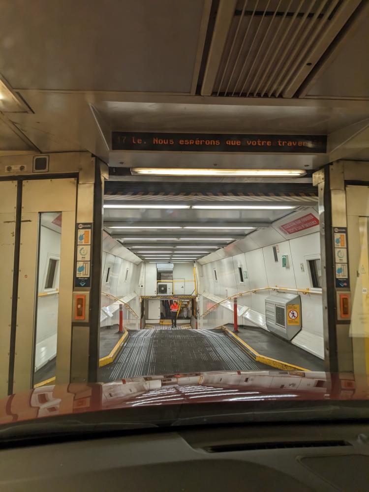 We were the first to get on in our section, so we drove up the ramp and then all the way down a long passage to the front.
