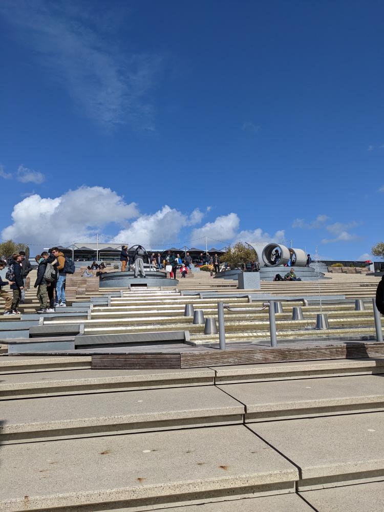 Mom and dad had spent the morning on a tour of the city centre and we had spent it in the car, so the first order of business was finding some lunch. That turned out to be a bit more difficult than we expected! First, we tried a nearby science museum that has a rooftop cafe with good food and stunning views. Unfortunately when we took the elevator up as far as it would go, we came out and realize there were still lots of stairs to the top where the cafe was! Since my mom gets around on really cool travel scooter, that was a no go. So down we went, on to the next place.