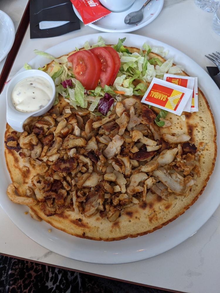 Mom and I both ordered the Chicken Shoarma pancake and in hindsight we should have shared one - these things were huge! The pancake is bigger than your head, almost bigger than the plate it is served on, and is thin yet fluffy. The chicken topping was cooked nicely with some good chargrill on it, and it came with a spicy garlic sauce. I did end up sharing some of mine with Joel in return for some of his!