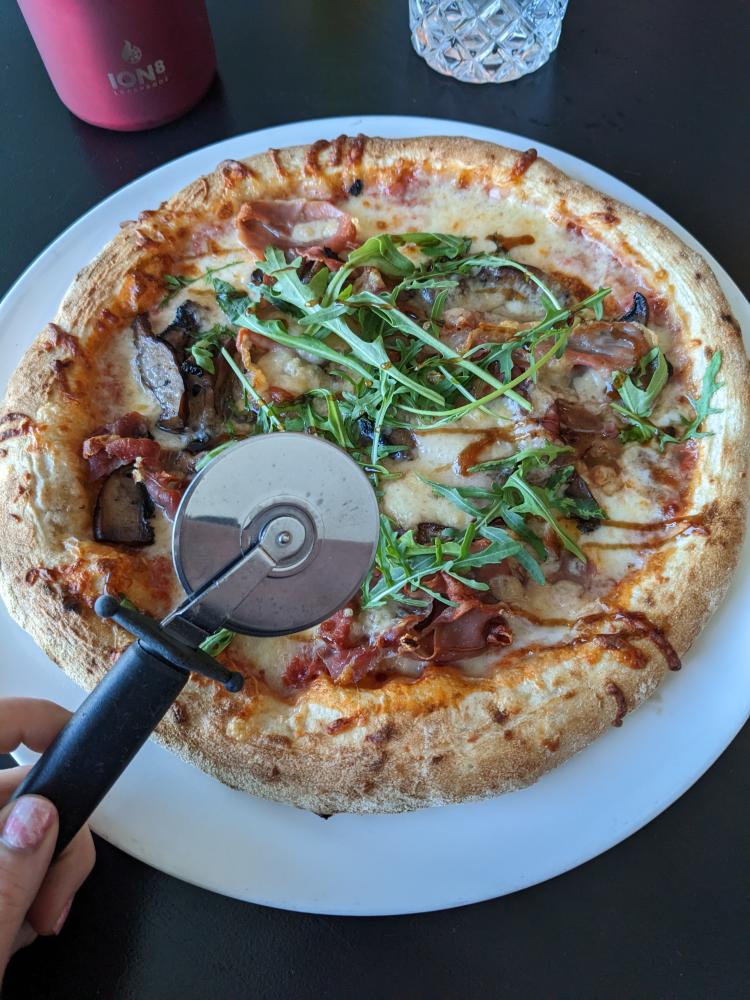 Then the boys went out of the city to find our accommodation for the next week, while I hung out with my parents at the hotel. We had a grand time just sitting around and catching up. I had not seen them in person in over a year! For dinner that night we ate at the hotel, and I ordered a mushroom and prosciutto pizza. It was delicious, but I was thrown by the fact that they brought me a pizza cutter and I had to cut it myself!