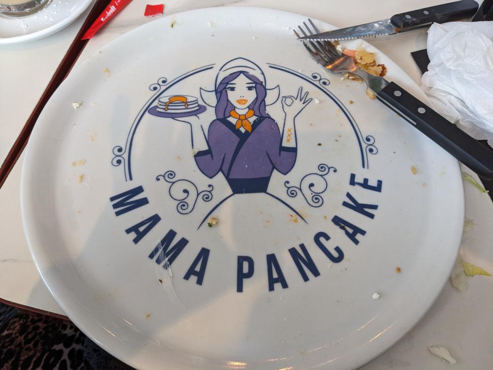Across the way I spotted a place called Mama Pancake - so I sent Joel over to see if we could get in there. He managed to score us some seats on the ground floor right by the door! Pancakes were on my list to try anyway so it turned out to be the perfect spot for a late lunch.