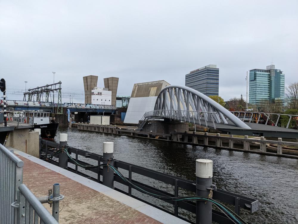 After that we walked back to the hotel along the canals and over the bridges. This bridge moved out of the way to allow a tall boat to come through! It is called the Oosterdok swing bridge and is one of over 1500 bridges in Amsterdam. A similar bridge has been in this place since the early 19th century, though the current iteration of it was built in 2005. Unlike a drawbridge, which opens vertically to let boats pass, a swing bridge rotates 90 degrees on a support ring. It was really cool to watch in action!