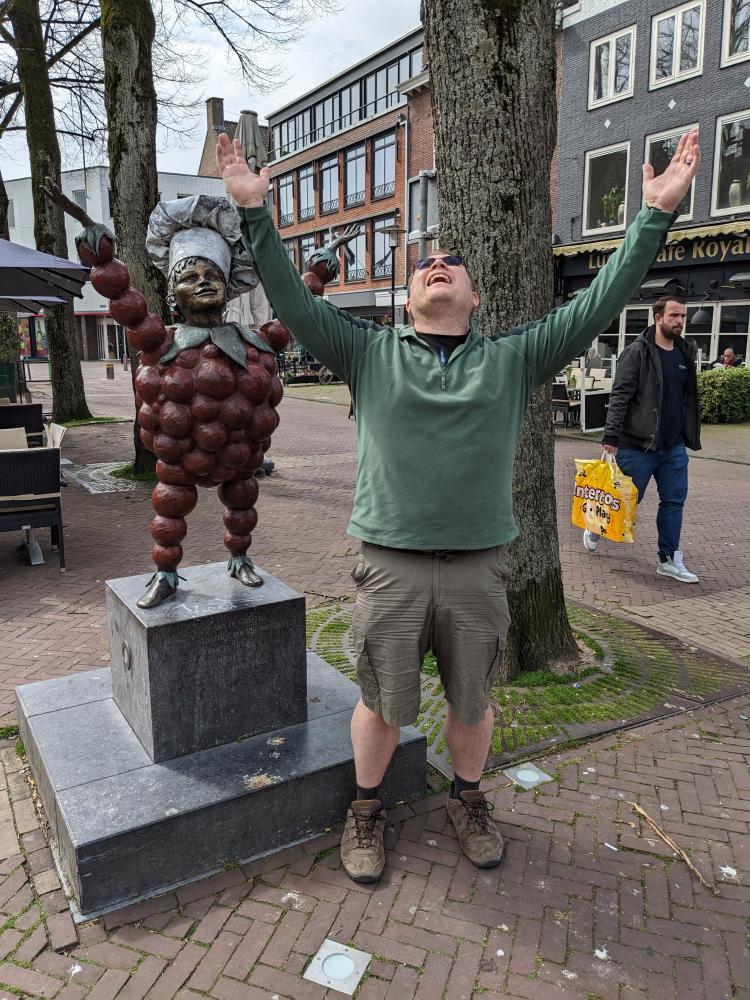 So Saturday we spent hanging out around the holiday park and then Sunday we went to two major places - Gouda and Rotterdam. I will write about both of those next. On Monday we needed a chill day again so we went to a nearby town called Tiel. The town used to be famous for fruit production and jam manufacturing. They housed the famous jam factory De Betuwe until 1993. The town still pays homage to this history by having paintings and statues of “Flipje” everywhere. He is a raspberry-based comic figure who starred in De Betuwe's, jam factory advertisements since the 1930s.