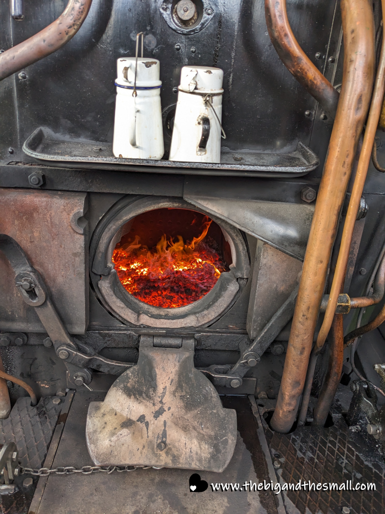 When we stopped before the return trip we were able to get a tour of the signal station and climb up on the front of the train. The conductor said when the train is going full speed the fire gets so hot it is pure white and you can’t look directly into it! Right now it was just glowing coals, and of course, the top of it was the perfect place to keep the tea warm. We were grateful for this truly British experience!