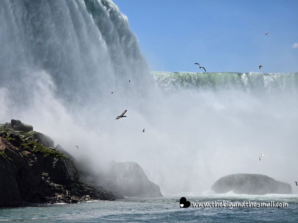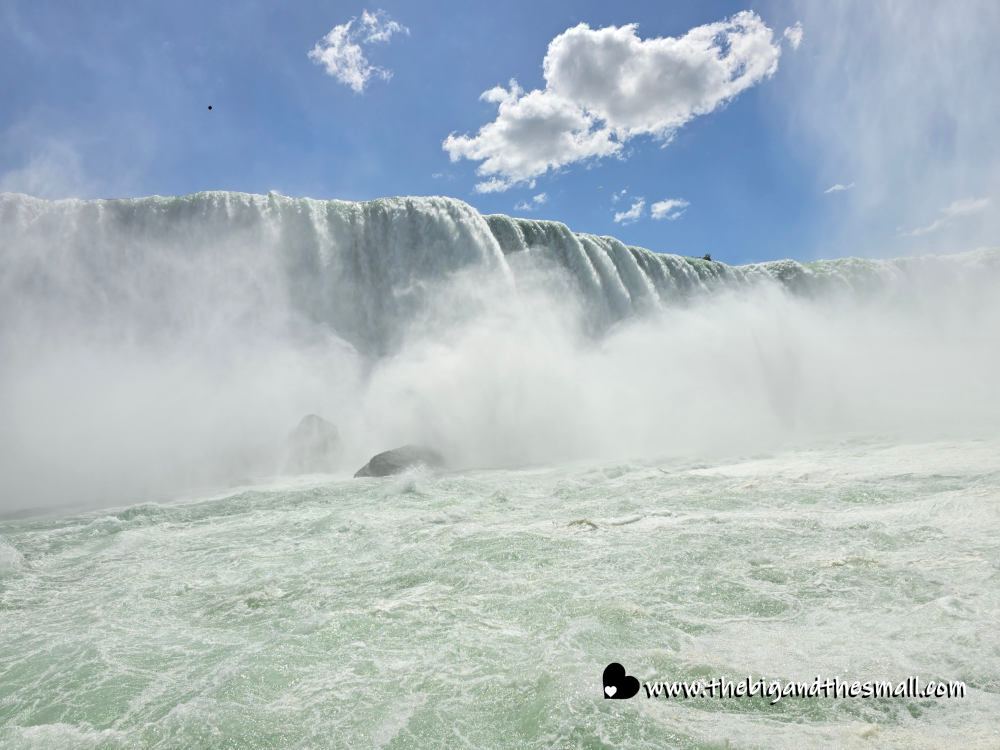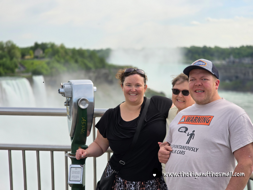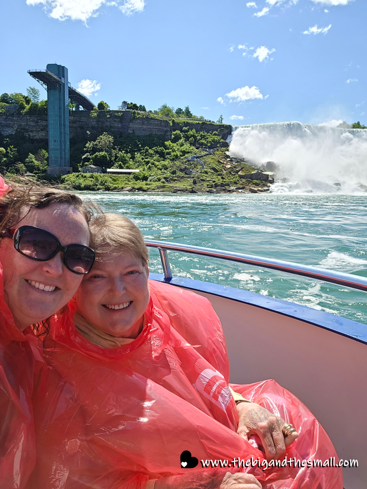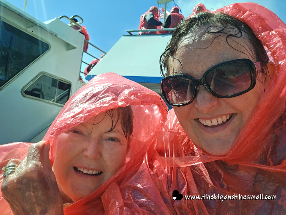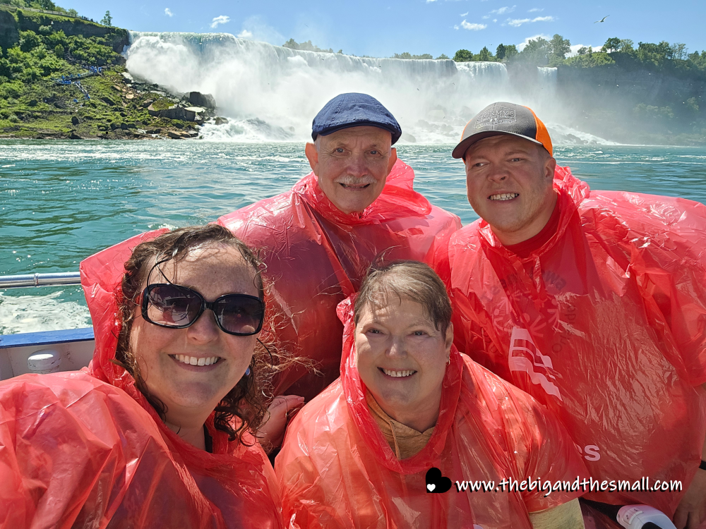 The next day we took the iconic boat ride into the falls. Everyone knows it as the “Maid of the Mist” - and it is still called that on the American side. But the Canadian side changed hands in 2014 and is now called the “Hornblower.” Mom and I braved staying on the outside of the ship, while Dad and Matthew chickened out and sat inside. Here we are at the start of the journey with the viewing platform behind us.