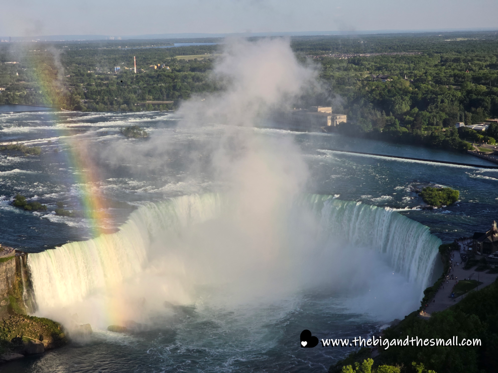 After that we got some poutine for lunch, then took a nice long nap before going out for a fancy dinner. From the boat we had spotted a cool tower overlooking the falls and mom wondered if they had a revolving restaurant at the top - it turns out yes! So we had dinner in the revolving restaurant and it was incredible. The food was good and the views were even better. I spotted my first rainbow from the falls!