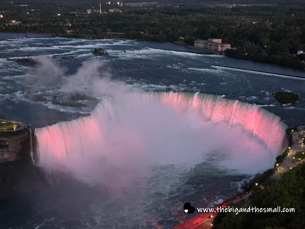 After dinner we went up another 2 levels to the observation deck and hung out until it was dark enough to see the lights they shine on the falls every night.