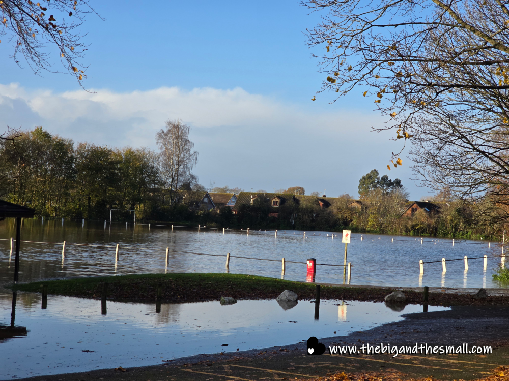 On Monday we went for a walk around the castle, curious to see what the storms had wrought. It was the most flooded we have ever seen it, with many of the walkways cut off and completely covered in water. The soccer pitches had straight up turned into a lake!