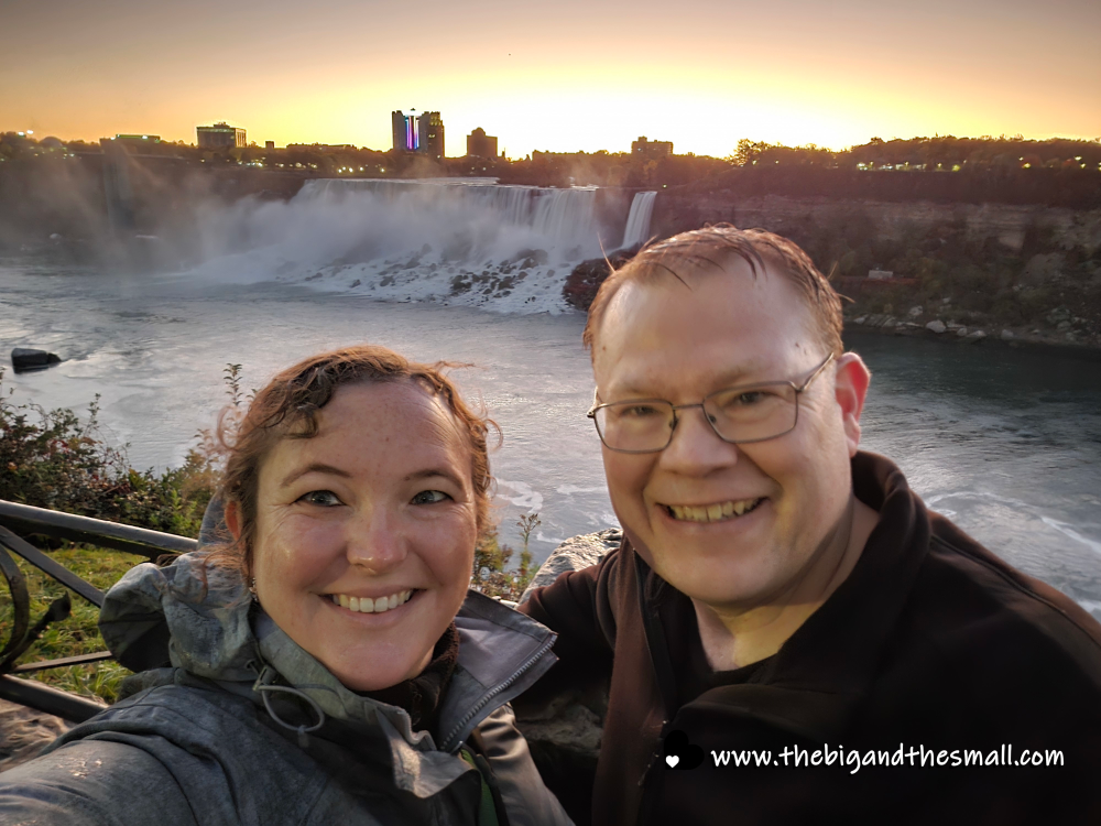 On the 20th, it was off to Niagara Falls! I know we just visited last summer, but we loved it so much we wanted to go again, particularly in the fall, so we could see the leaves in full glory. We flew out from Heathrow Monday afternoon, landed in Toronto, rented a car, and drove to our hotel in time to get a good night’s sleep. The next day, we took advantage of our jet lag to get up early and catch sunrise at the falls!