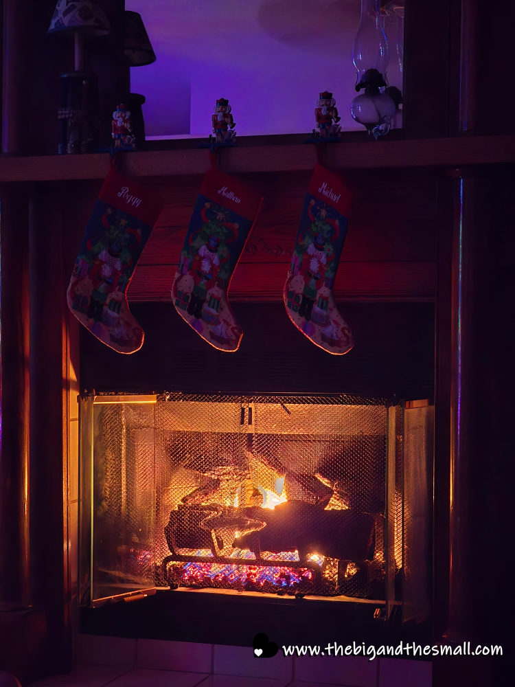 Thankfully, my parents have a gas fireplace so it’s easy to have a nice warm fire going whenever you want!