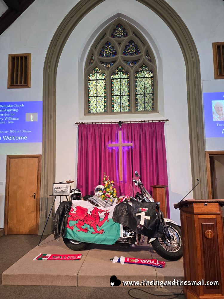 On Tuesday the 24th, I attended a funeral at Chepstow, and saw something I’d never seen before - a motorcycle in the church! The gentleman had been a member of the Christian Motorcyclists Association, so it was a very moving tribute.